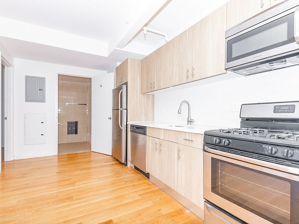 Sunny large 2 bed / 1 bath loft style apartment. South facing windows. Bedrooms on opposite sides of the living room. Unit features: Hardwood floors Dishwasher Stainless steel appliances Custom kitchen and bath with beautiful tile work and granite countertops. Floor to ceiling windows Separate efficient PTAC heat and cooling units in all rooms Queen Sized bedrooms Building features: ButterflyMX intercom Latch bluetooth lock system Multiple laundry rooms Garage Parking ($300/mo) Huge Roof deck Zipcars available Bike storage Go Lockers for shipping and receiving packages securely State-of-the-art security system throughout Fantastic location close to tons of cool local spots as well as a 2min walk to the Myrtle/Broadway JMZ and 12min to the L train. Pets ok NO Broker fee! $20 app fee Call or text to view the right away.
