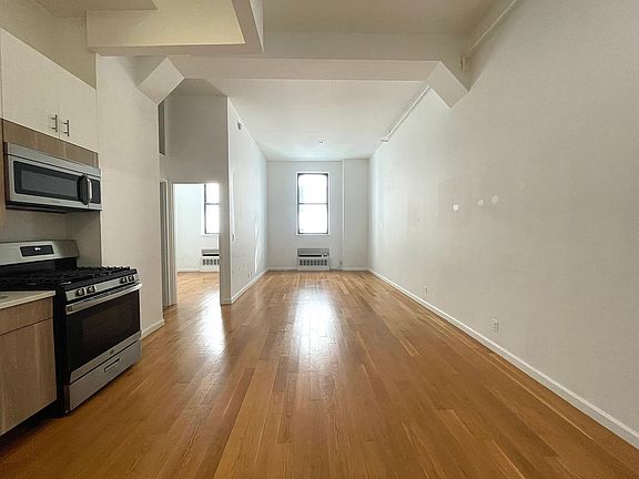 Experience History and Comfort in this 1 Bed / 1 Bath Converted Church Apartment Step into a unique blend of past and present with this inviting 1 bedroom, 1 bathroom apartment. Situated within a meticulously renovated 150-year-old church and school, this space harmoniously merges historic aesthetics with modern convenience. The unit features high ceilings, a modern kitchen and bathroom, oversized windows that flood that apartment with natural light, hardwood floors and efficient heating/cooling units. The building provides all the amenities you need for a comfortable and convenient lifestyle, including the ButterflyMX intercom, laundry room, expansive roof deck with stunning Manhattan views, parking options, bike storage, and secure Go Lockers for package deliveries. The unbeatable location places you in close proximity to neighborhood bars, restaurants, coffee shops, and boutiques. Additionally, the Myrtle/Broadway JMZ station is just a 2-minute walk away, and the L train is a mere 10 minutes away. Don't miss out on the opportunity to see this incredible apartment!