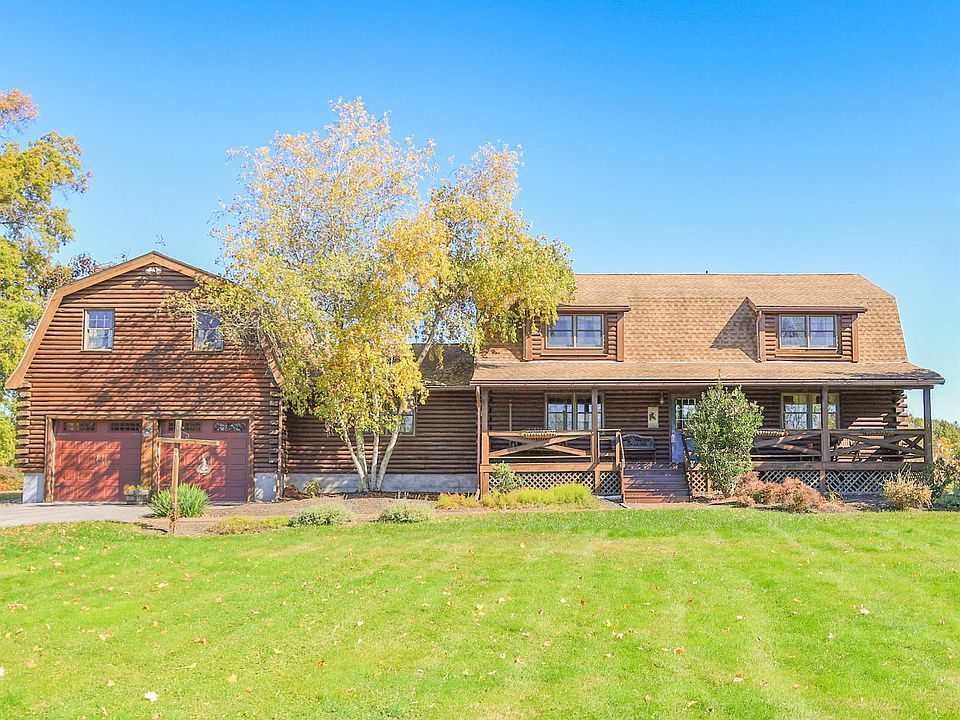 Welcome to 618 Clapp Hill Road in Lagrangeville a one-of-a-kind log cabin retreat blending rustic charm with spacious, modern living. Set on two scenic, level acres, this home offers over 3,300 sq ft plus a finished bonus room above the garage ideal for remote work or guests. The main level features a beautifully appointed eat-in kitchen with a large center island, plus dining, living, and family rooms perfect for entertaining. A first-floor bedroom, full bath, and laundry room add flexibility. Toward the rear, a Sunroom and bar nook lead to a porch overlooking the backyard. Upstairs, the primary ensuite is joined by three additional bedrooms and a full hall bath. Outdoor living includes a welcoming front porch, peaceful back porch, mature trees, and expansive lawn. Enjoy the tranquility of country living with easy access to shopping, dining, and amenities in Poughkeepsie and Hopewell Junction. A rare rental opportunity schedule your private tour today.