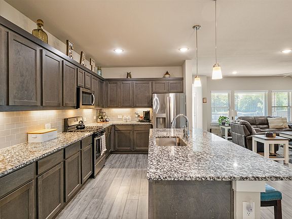 Beautiful 4 bed, 3 bath home in Red Oak with greenbelt views and no back neighbors! Built in 2022, this 2,178 sqft home features granite countertops, a large pantry, gas range, and open-concept living with electric fireplace. Enjoy a covered front porch, custom back deck, and spacious layout. Located near shopping, B&B Theater, Cassaro Winery, and just 30 mins to Downtown Dallas. Community includes splash pad, playground & well-kept surroundings. Extra parking with no home across the street!