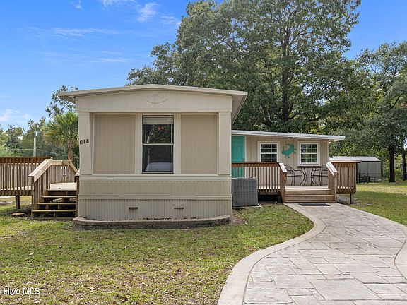 NO HOA/FLOOD ZONE. Bring your boat! Location! Location! Location! Welcome to 618 Creek Drive minutes from the Surf City Bridge. Meticulously maintained home can be your Oasis conveniently located to Surf City Restaurants, Shopping, Medical Services, Public Boat Ramp, Parks and Topsail Island's Beautiful Beaches. 3 bed/2bath with amazing upgrades has it all. Spacious kitchen with plenty of cabinetry. Stainless steel appliances with chef friendly layout. The living room is spacious with the main bathroom and laundry for convenience. Corner Lot with Palm Tree lined yard features a shed 10x15 with total 20x 47 covered party area adds outdoor activities and plenty of space for beach TOYZ!