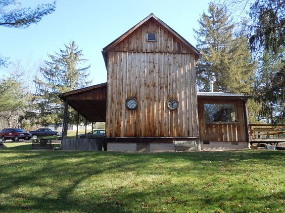 A little bit of town and the country'' in town, but on the outskirts. On a hill overlooking wooded valley. Nice view with privacy in front. Sit on the porch swing and relax. Plenty of lawn space to enjoy those outdoor games.