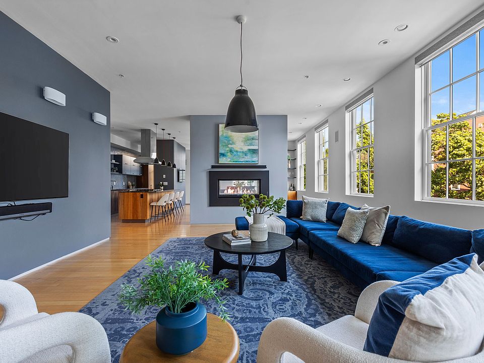 Available for lease starting soon or for purchase at $1.599m. The one-of-a-kind design and dramatic natural light make this corner flat a true standout in South Boston. Set on a single level, the home unfolds with soaring ceilings, three walls of glass, and a sleek double-sided fireplace anchoring an expansive open living space. A flexible dining area and bonus nook offer the perfect setting for a home office, art studio, or reading retreat. The chef's kitchen pairs custom Henrybuilt cabinetry with Dornbracht fixtures and iconic Fritz Hansen lighting in a clean, contemporary finish that balances warmth and precision. The primary suite features a walk-in closet with custom built-ins, while the second bedroom adapts easily to guests or creative use. Everyday ease comes with in-unit laundry, central air, abundant storage, and direct-access garage parking.