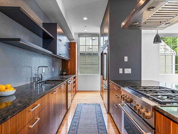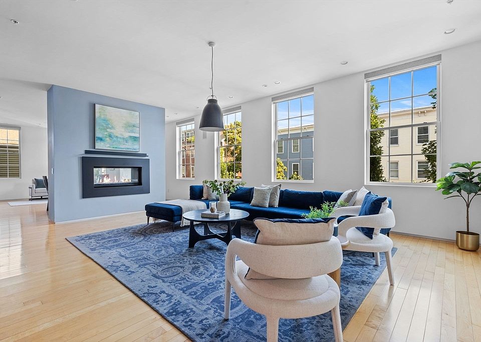 One-of-a-kind design and dramatic natural light set this re-priced corner home apart in South Boston. The single-floor layout is anchored by soaring ceilings, three walls of oversized windows, and a sleek double-sided fireplace that define the expansive open living room. A flexible dining area and bonus nook create space for a home office, studio, or reading spot. The chef’s kitchen features custom Henrybuilt cabinetry, Dornbracht fixtures, and iconic Fritz Hansen lighting in a modern, clean finish. The primary suite includes a walk-in closet with built-ins, while the second bedroom adapts easily to multiple uses. In-unit laundry, central air, abundant storage, and direct-access garage parking add everyday ease. With its striking design and East Side location near parks, restaurants, and transit, this condo delivers elevated city living.