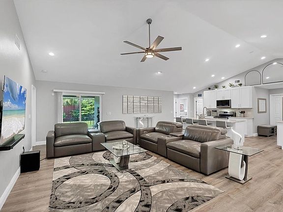 Welcome to your dream home in the highly sought-after Eastpointe community! This beautifully designed completely renovated open great room 4-bedroom, 2-bath home offers a spacious split-bedroom floor plan with thoughtful upgrades throughout, nestled in a peaceful cul-de-sac neighborhood known for its lush landscaping and serene surroundings. Step inside to find luxury vinyl flooring flowing seamlessly throughout the open floor plan home, enhancing its modern elegance and easy maintenance. The light-filled living room features a vaulted ceiling and opens to a covered porch via sliding glass doors—ideal for indoor-outdoor living. From there, enjoy your private, fully fenced backyard complete with fruit trees, perfect for gardening, play, or quiet relaxation. At the heart of the home, the open kitchen is a chef’s delight with stainless steel appliances, 42-inch cabinets, granite countertops, a large eat-at island with an undermount sink and dishwasher, and direct access to the dining area just off the living room—perfect for entertaining. The private primary suite is a true retreat, featuring French doors that open to a sitting area/office/nusery, dual walk-in closets with custom shelving, and a spa-like en suite bath. Unwind in the soaking tub, or enjoy the modern glass walk-in shower, dual sinks, and contemporary light-up mirrors. The three additional bedrooms are located on the opposite side of the home, offering privacy for family or guests. The main bathroom features a tub with shower combo and modern finishes. Just off the kitchen, you’ll find a convenient mudroom and separate laundry room, leading to a spacious 2-car garage with plenty of storage space. Located just off Fruitville Road, you’ll enjoy easy access to I-75, top-rated schools, shopping, dining, UTC Mall, and all the vibrant amenities of downtown Sarasota, St. Armands Circle, and Lido Key—all just minutes away. Don’t miss your opportunity to own this beautiful home in a quiet, established neighborhood that offers both tranquility and convenience. Schedule your private tour today!