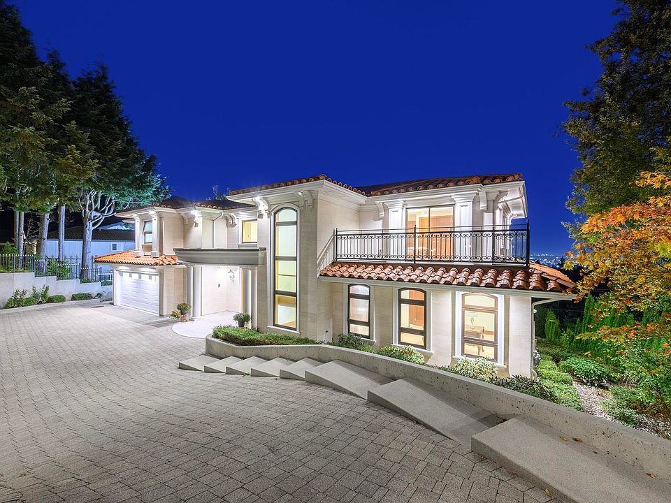 Located in the heart of West Vancouver’s prestigious British Properties, this 7,289 sq. ft. luxury estate sits on a 15,020 sq. ft. lot. Gated entrance with convenient driveway, offering mountain and ocean views, plus a sunny south-facing backyard with great privacy. The home features 6 bedrooms, 7 bathrooms, double garage, high ceilings, grand foyer with chandelier, elevator, and a functional layout. Gourmet kitchen with wok kitchen, spectacular balconies for year-round outdoor living. The bright basement offers home theatre, wine cellar, sauna, steam room, gym, wet bar, and more. All bedrooms upstairs are ensuited. Equipped with radiant heating and A/C, this residence combines comfort, elegance, and modern convenience. Public open on Sun 2-4pm, Oct 5.