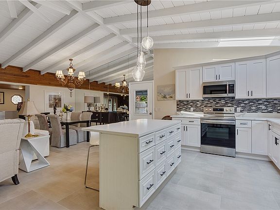 Central Beach location oozing with charm and character! Newly renovated floor plan including brand new kitchen, owners suite, new flooring throughout. Roof 2019- Located near parks, restaurants and shopping. Built in bar off the family room with sliders leading to a large deck. Impact windows and doors. Ready to move in!