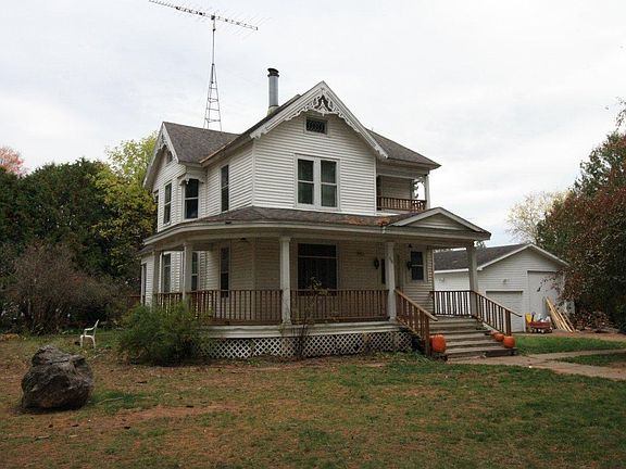 (310/AS) Beautiful Victorian Home in the Village of Hawkins! If you are looking for turn of the century style, look no further. This wonderful home has 4 bedrooms and 2 baths. The main floor has a large kitchen, formal dining room, living room with brick fireplace, bedroom, bathroom, and laundry room. The second floor has 3 large bedrooms and a bathroom. There are two fantastic outdoor living spaces with a back sundeck and a front wrap-around covered porch. This spacious home is located on 3 city lots providing privacy. On this corner lot there are many towering White Pine. The oversized 2 stall garage has room for a workshop or storage. There aren’t many homes like this on the market. Set up a showing soon!! 2022 taxes: 748.69 (14-35-3W, NE-SW Village of Hawkins Lots 8, 9, & 10 Block 7 Document #355775)