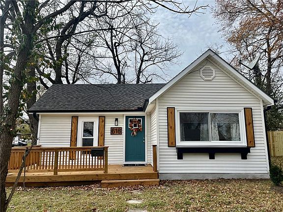 Spacious and inviting 2 bedroom, 1 bath home on a corner lot, within 1/2 mile of 169 HWY for easy commuter access! Fresh remodel includes brand new windows, doors, energy efficient HVAC, water heater, and all interior finishes. Large kitchen with tall, soft close cabinetry, quartz countertops, tiled backsplash and upgraded appliances. Living room has a cozy fireplace and engineered hardwood flooring. The bathroom has a cute tile floor and shiplap walls. Both bedrooms offer plenty of room and there?s even a home office nook, with more storage, in the hallway. Move in ready! All window blinds and coverings stay. The back yard has a new privacy fence, large covered porch complete with string lights and a storage shed. Oversized parking area off the alley. Lots of curb appeal and low maintenance vinyl siding- who needs a new home for the holidays?!