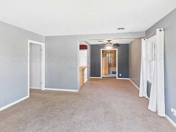 Conviently located off HWY 54, this 3-bedroom, 2-bath home on a corner lot near the Texas-Oklahoma Panhandle border! Enjoy two spacious living areas (easily a 4th bedroom), a 2-car garage, and a 2-car carport for hail protection. Two long driveways mean plenty of parking for guests, RVs, or extra vehicles. Inside features trending paint colors, updated carpet, and a remodeled bathroom. Separate utility room with extra storage. New privacy fenced backyard, security, and curb appeal. Convenient border-town location with small-town comfort and easy access to both states—move-in ready and full of modern updates!