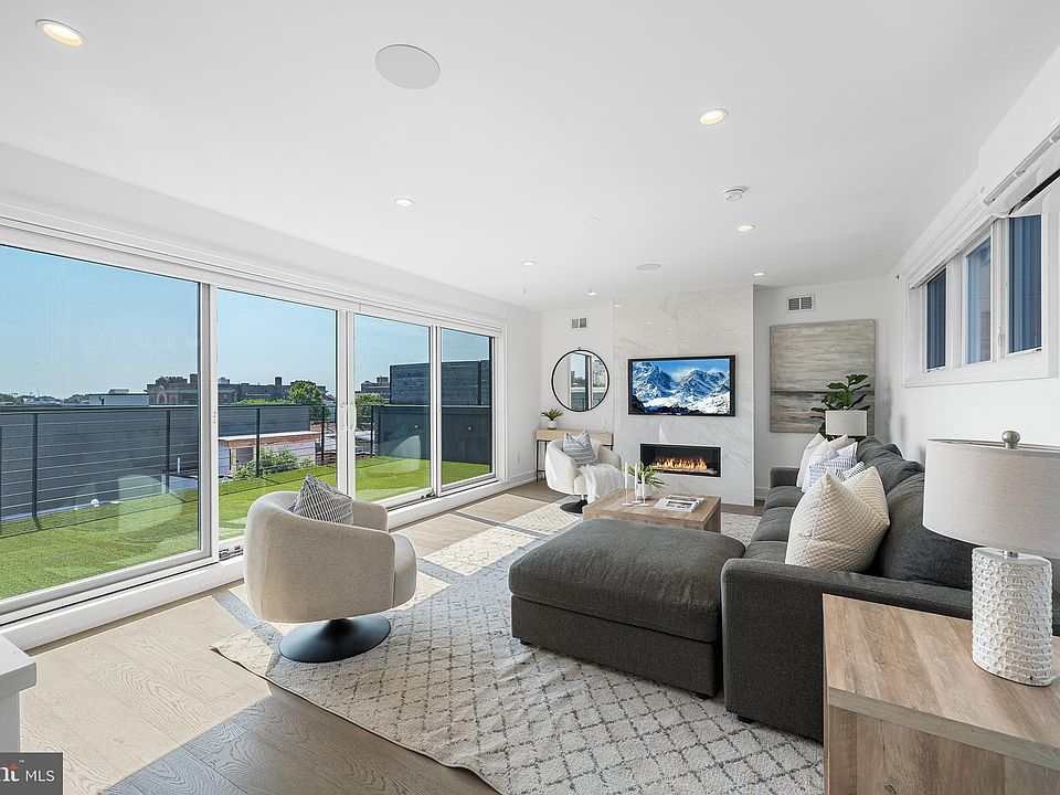 Welcome to 618 S Clarion Street, an extraordinary 35-foot-wide luxury townhome tucked within the private, gated Kater Court community in the heart of Bella Vista. Offering over 4,000 square feet of impeccably designed living space, this rare residence features a private 2-car garage, elevator access to every level, and refined indoor-outdoor living in one of Philadelphia’s most vibrant neighborhoods. Step into a dramatic foyer where soaring ceilings and wide-plank hardwood floors set a sophisticated tone. Just off the entry, you'll find direct access to the large 2 car garage. One floor below is a spacious flex room with a full bath and wet bar—perfect for a media lounge, guest suite, or home gym. From there, the private elevator provides effortless access to the main living level. Bathed in natural light, the open-concept layout is designed for both comfort and entertaining. A sleek fireplace anchors the living area, while the adjoining chef’s kitchen impresses with a six-burner Wolf range, Sub-Zero appliances, handcrafted cabinetry, and a statement island. Just beyond, a balcony off the kitchen extends the living space outdoors—ideal for quiet mornings over coffee and evening gatherings with friends and family. The Owner’s Suite occupies its own full floor—a serene retreat featuring oversized windows, dual walk-in closets, and a spa-inspired bath with Porcelanosa tile, Waterworks fixtures, a freestanding soaking tub, and a large walk-in shower. The fourth floor offers three additional bedrooms and two full baths. One bedroom includes its own en-suite, while the other two generously sized rooms flank a spacious bathroom with a double vanity—perfect for guests or family. At the top, a sunlit bonus room with built-in wet bar opens through a wall of sliding glass doors to an oversized private terrace with open western views of the Center City skyline—an ideal setting for entertaining or unwinding under the stars. With four bedrooms, four full baths, two half baths, multiple outdoor spaces, 2 car garage, and approximately six years remaining on the tax abatement, 618 S Clarion delivers a rare blend of luxury, scale, and location in the heart of Center City. This exceptional home is a true gem—don’t miss the opportunity to make it yours.