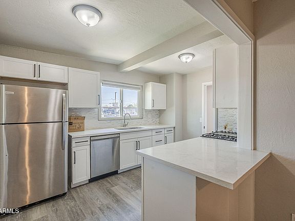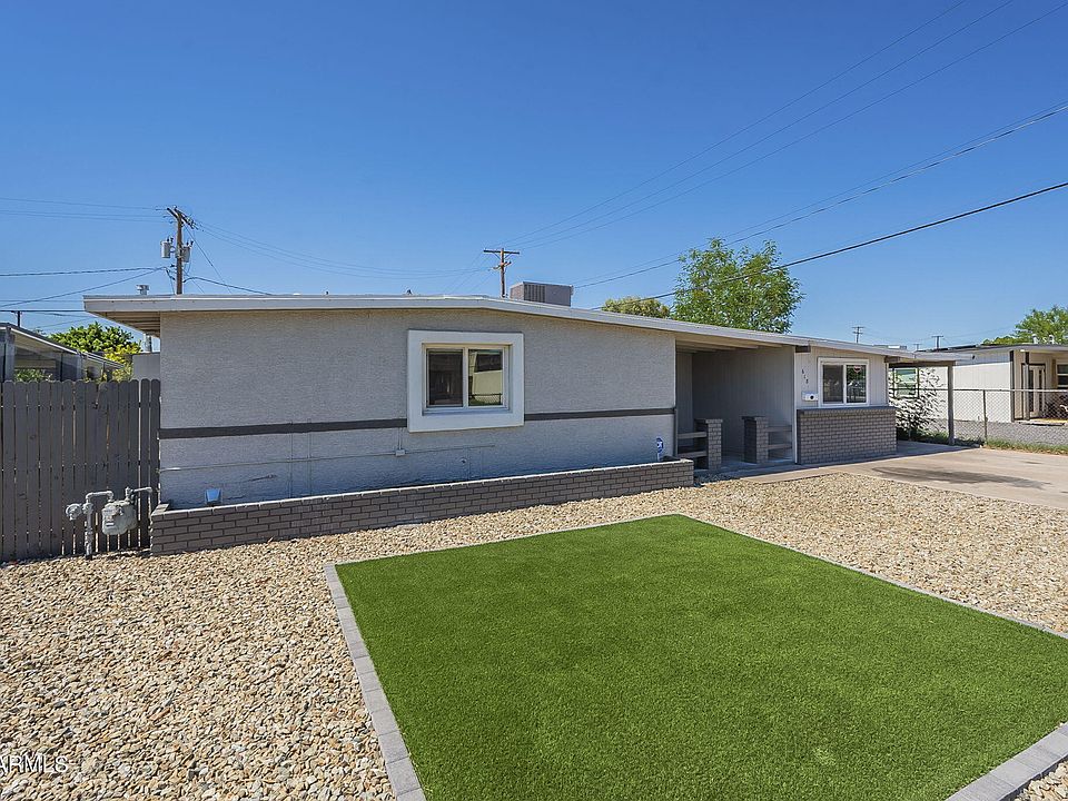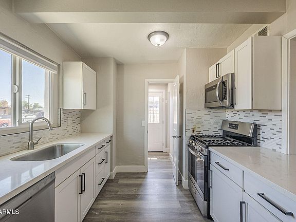 This quaint Mesa home offers a balance of comfort, style, and everyday practicality. The landscaping has been designed for easy upkeep with artificial turf in front and back. A shed in the backyard adds extra storage, and the RV gate paired with no HOA means you have the flexibility to park or store all your toys without restrictions. Inside, gorgeous flooring sets the tone for a warm and inviting space. The kitchen is a highlight, featuring matching stainless steel appliances, a gas stove, stylish backsplash, and plenty of cabinet space to keep things organized. It's a setup that feels both functional and modern, ready for weeknight meals or weekend gatherings. This home isn't just move-in ready, it's designed to make daily living easier, with thoughtful updates and low-maintenance features that give you more time to enjoy your space.
