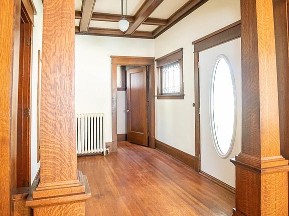 A 4 bedroom home with original character is ready for you! This home has original wood flooring, woodwork, coffered ceilings in living and dining rooms, built in hutches, and beautiful light fixtures. Ceilings are at at least 10 foot high. 2 bedrooms and the full bath are located on the main floor and remaining 2 bedrooms are on the second floor. All bedrooms are spacious with walk in closets. All appliances are included, but please note there is no refrigerator. The seller had a new porch installed recently and a new roof was placed in 2021. Water Heater was new in 2019 and the electrical panel has also been updated. There is potential for so much more in this home. The basement is largely unfinished and waiting for your ideas. There is unused attic space that has potential for finishing. A 1 car garage could also be added on the north side of the home. Please note average utilities is a 12 month average and includes: gas, electric, water, sewer and garbage.