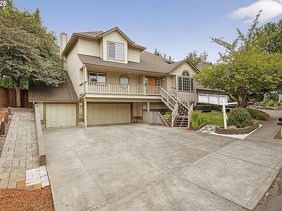 Welcome to this spacious home featuring an ample 3-car garage with room for cars, boats, or recreational toys. Perched above the street, enjoy beautiful sunsets from the inviting front balcony. Inside, a large living room and formal dining area greet you and lead into the kitchen + family room combo, which features a lovely wood fireplace and overlooks a park-like backyard with a deck — perfect for entertaining! The kitchen boasts granite countertops, a cooktop island, and abundant storage. Upstairs offers a roomy primary bedroom with ensuite featuring dual sinks, a jacuzzi tub, walk-in shower, and huge closet, plus 3 additional bedrooms with new carpet. The lower level is ideal for a home theater, game room, or sports lounge. Step outside to your serene backyard oasis featuring raised garden beds, fruit trees, a stone patio, and pristine landscaping — a true retreat to relax, BBQ, and enjoy!
