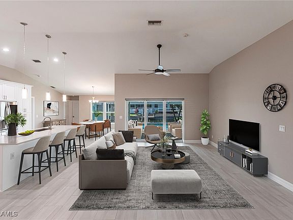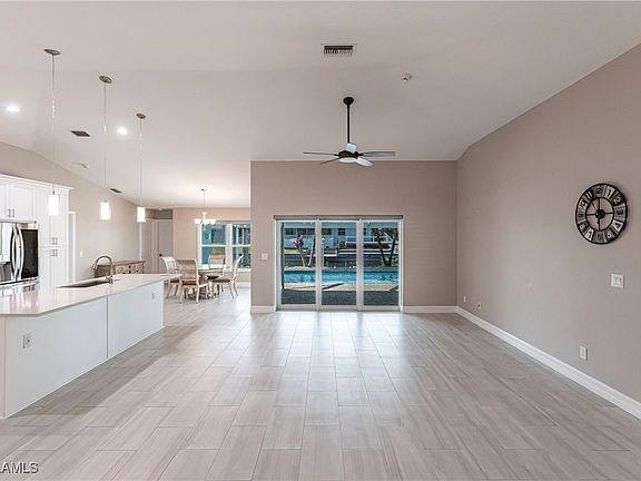 Welcome to this Beautiful 3Bed/2Bath Pool Home with Southern Exposure on a Freshwater Canal. The open-concept design provides a seamless flow between living areas, perfect for relaxation and entertaining. Enjoy Florida's sunny days in the pool overlooking a serene freshwater canal. The property was recently remodeled and features updated high end LG appliances, Quartz countertops in the kitchen and bathrooms, Epoxi coated garage floor, hurricane shutters/impact glass on sliders and DR window, remodeled laundry room, automated LR/DR slider shades, new pool cage with picture window and upgraded fasteners. Dock lighting and automated shade on lanai to provide privacy and shade from the sun on the west side. All outside doors and hurricane-rated garage door were replaced in 2021, new roof in 2024 and a new water heater in 2025. This property is a must-see for those seeking a comfortable and relaxed lifestyle in Cape Coral.