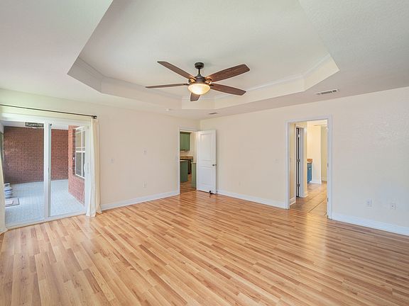 This spacious brick home screams high end, yet comfortable featuring a split floor plan, spacious living spaces, and high ceilings and ceiling fans throughout. The master bedroom is generously sized, offering plenty of room and privacy. Luxury vinyl plank flooring runs through much of the home, enhancing the bright and airy feel with hard tiles and wood in the rest- perfect for your fur babies to enjoy. The kitchen boasts granite countertops, ample cabinetry, and plenty of prep space, opening to the living area with a cozy fireplace. The two sliding glass doors lead to a large deck overlooking a large fenced backyardperfect for relaxing or entertaining.
