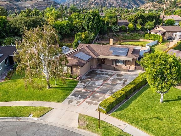 Welcome to 618 Thornhurst! The front house offers 3 bedrooms and 2 bathrooms, while the back house provides 1 bedroom and 1 bathroom, making this a rare Glendora property with two homes on one expansive lot at the end of a peaceful cul-de-sac that feels like a private corner lot. The main residence includes a primary suite with attached bath, a spacious living room with a brick fireplace, a beautifully upgraded kitchen with granite counters, custom cabinetry, and stainless steel appliances, plus a dining area, family room, and a bright sunroom/den for added living space. The back home features its own full kitchen, living room, and modern finishes—ideal for extended family, in-laws, or rental income. Each home enjoys separated yard spaces for privacy, while shared outdoor amenities include a sparkling pool, large grassy lawn, covered patio, and mature landscaping. Additional highlights are solar panels for energy efficiency, ample parking, and a desirable location near Willowsprings Park and top-rated Glendora schools. This property offers versatile living options, resort-style outdoor amenities, and an excellent opportunity for multi-generational living or investment.