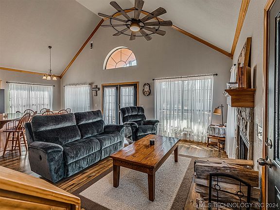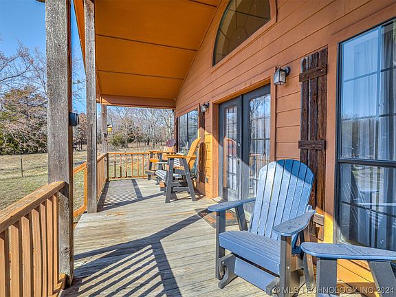 Cozy country living awaits you in this recently renovated Three bedroom, Two bathroom property sitting on a sprawling 4.2 acres of land with mature trees all around. This home features new light fixtures, fresh paint, new carpet, a new hot water tank, and a storm shelter for peace of mind. Enjoy brand new appliances, refinished cabinets, and new back and front decking for outdoor entertaining. Stay warm with two brand new blue flame wall heaters and cozy up to a wood burning fireplace. The handcrafted wood island adds charm to the kitchen, while the solid wood doors and trim throughout give the home a rustic feel. Don't miss out on this beautifully updated countryside property!