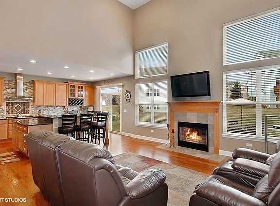 Spectacular home with a contemporary design and open floor plan accented with detailed millwork throughout. Impressive two-story family room and dream kitchen with endless granite counters, stylish backsplash, 42" cabinets with glass inserts, stainless steel appliances and convenient breakfast area. Hardwood flooring throughout first floor that also includes welcoming living room, separate dining area and private home office. Luxurious master bedroom suite includes sitting area, walk-in closets, separate bathroom vanities and relaxing whirlpool tub. Gorgeous finished basement with huge entertainment room, bar area, work room, bathroom and wonderful children''s play room. Covered front porch, brick paver patio and professional landscaping. All of this in sought after School District #301 and with a community clubhouse and outdoor swimming pool. Truly Impressive! Must see!!!