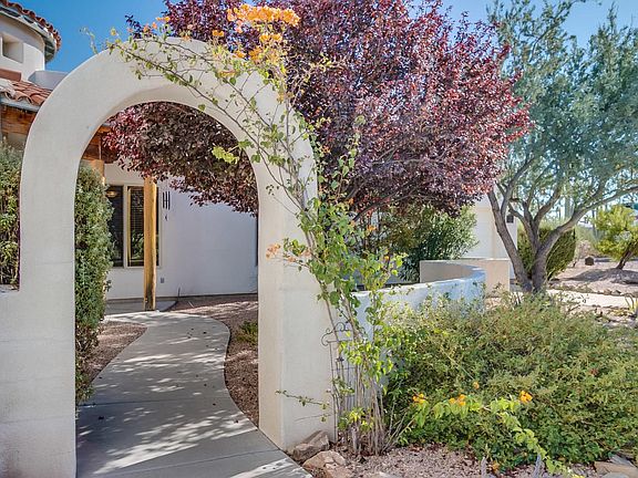 Stunning panoramic mountain views greet you the moment you step inside this meticulously maintained home. Custom home with eye catching architecture including vega beams on the ceiling, rounded rooms to capture the sweeping city views and spacious layout will impress. This 3.3 acre lot feels like you're living in the country, but provides access to all the Tucson amenities within minutes! Plenty of room for everyone with 5 bedrooms, 4 bathrooms, polished home office and 4 car garage. The kitchen is perfect for entertaining in a great room setting. Family and friends can cozy up to the beehive fireplace or step outside on the patio to enjoy the amazing view. The ample master bedroom with a spa like on-suite has dual vanities, a step in shower and a soaking tub. Step out of the master