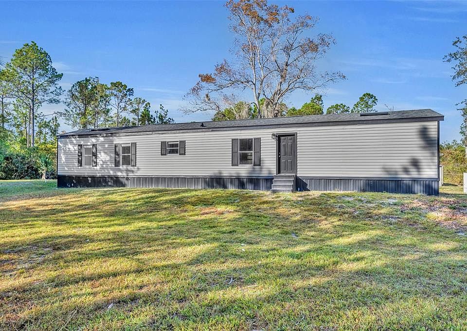 5 ACRES. RENOVATED. ROOF AND HVAC 2024. Experience the country lifestyle in this 2 bedroom, 2 bathroom home featuring vaulted ceilings, tile throughout, and an updated kitchen with eating space. The split bedroom floorplan includes a bonus room with lots of windows for natural light, perfect for extra living space, an office, or a possible third bedroom. The primary bedroom has an ensuite bathroom and the home also has an inside laundry room. The 24 x 36 outbuilding with a garage bay provides excellent storage along with room for a car, equipment, and more. This property qualifies for USDA financing with zero down for eligible buyers and is only 10 minutes from De Leon Springs State Park and Heart Island Conservation. Less than an hour from Ormond Beach, Daytona Beach, and New Smyrna Beach. If you have been searching for land, privacy, and a move in ready home, schedule your showing today!