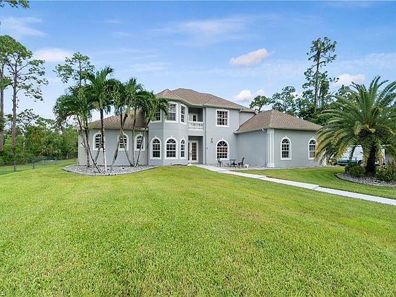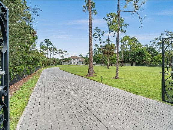Arguably the finest cleared, fully fenced, and fully irrigated property in Oakes Estates, this 2.73-acre estate offers an unmatched blend of privacy, space, and elegance. As you enter through a grand electric gate, you are welcomed into a meticulously maintained property featuring a spacious 4-bedroom, 3.5-bath home with a 3-car garage and a den. Designed with both luxury and security in mind, this fortress-like residence boasts impact windows throughout, bathing the interiors in abundant natural light. The thoughtfully designed floor plan ensures comfort and convenience, with a first-floor master suite and private den, while three additional bedrooms are situated upstairs. The second-floor balcony provides a tranquil setting to savor your morning coffee or unwind in the evening as you take in breathtaking Florida sunsets. The recently added beach-entry pool serves as the heart of the outdoor oasis, offering a serene retreat for relaxation or entertaining. Surrounded by lush landscaping, the backyard is an ideal space to host gatherings or enjoy the peaceful ambiance of estate living. Located in one of Naples’ most sought-after communities, this rare gem comes with no HOA fees, providing the freedom to truly make this property your own and create forever lasting memories.