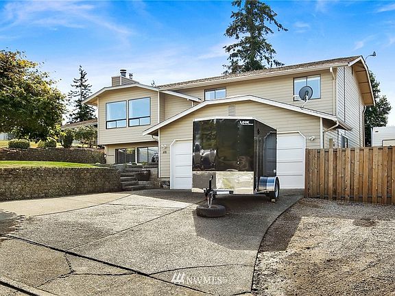 This 4 bedroom, 3 bathroom house is a stunner! Enjoy the peek-a-boo Mt Baker views from the living room picture window, relax on the covered deck in your fully fenced backyard, and park your RV or boat in the side yard parking area. There is an outdoor storage building that can be used as a hobby room and a chicken coop and fire pit area as well! Stainless steel appliances have been recently upgraded including a commercial range, extra freezer, and shelving in downstairs utility room to stay. Newer flooring and remodeled downstairs bathroom. Pride of ownership shows throughout!