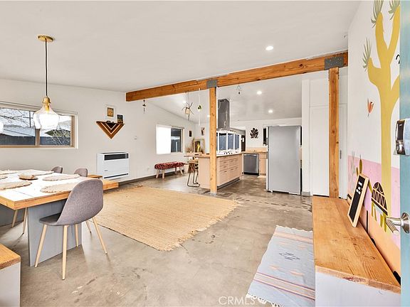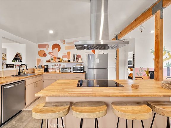 Gorgeous 2-Bed, 2-Bath Permitted Short-Term Rental with large Bonus Room & FHA Assumable 3.1% Loan!(Buyer must qualify to assume) .This stunning 896 sqft home + approx 400 sqft bonus room is a rare find! Not only does it offer a low FHA assumable 3.1% loan, but it’s also a fully permitted short-term rental, making it a fantastic opportunity for investors or those looking for a stylish desert retreat. The location of this home is amazing, only a quick drive down the road to all of downtown JT restaurants and shops and only eight minutes away from the entrance of the Joshua Tree National Park! As you arrive, you’ll be greeted by mature desert landscaping, including beautiful Joshua Trees, creating a serene and inviting atmosphere. Step inside to find an open-concept floor plan with polished concrete floors that flow seamlessly throughout the home, adding a sleek and modern touch. The spacious kitchen is the centerpiece of the home, featuring a large island, ample cabinetry for storage, and plenty of counter space—perfect for cooking and entertaining. The bonus room serves as an expansive living area, complete with vaulted ceilings, a large bank of windows offering natural light and patio views, and its own bathroom with a stylish walk-in shower and direct access to the side yard, where the jacuzzi is located. Both bedrooms are generously sized, with one featuring built-in storage and direct sliding door access to the jacuzzi area. The back yard is completely fenced with privacy fencing allowing you to fully enjoy the beautiful patio area. Whether you’re looking to continue operating this home as a successful short-term rental or make it your primary residence, the possibilities are endless! Don’t miss this incredible opportunity—schedule your showing today before it’s gone!