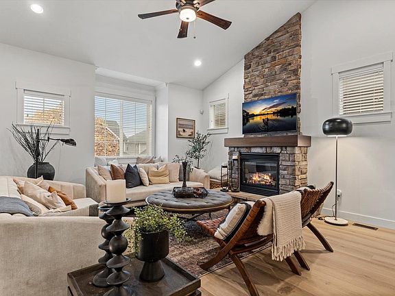 Vaulted ceilings, modern finishes, and a private backyard — this 5 bed, 3 bath Promontory home has it all. Complete with mountain views, this family-friendly residence offers space, style and flexibility. The bright, open-concept kitchen features stainless steel appliances, a large island and seamless flow into a stunning living room with vaulted ceilings and a stone-accented gas fireplace. Step outside to your fully fenced, tree-lined yard with hot tub - relax enjoy! Upstairs, three spacious bedrooms include a luxurious primary suite with a walk-in closet, double vanity and walk-in shower. The lower level has a separate entrance, office and 2 bedrooms plus rough-ins to create a 1 bedroom suite — perfect for guests or extra income potential.
