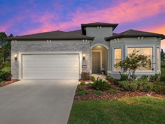 Are you in the market to purchase an impeccable move-in ready home in the desirable Stone Creek community in Ocala? Completed in June 2024, with twenty-four-hour gate house security, this exquisite and elegant Prestige model sits in a cul-de-sac. You are within walking distance of all the amenities. The home offers over $150K + in upgrades while sitting on a premium lot with dreamy sunsets and serene water views. This stunning 2-bedroom, 2.5 bath plus+ flex/bonus/3rd bedroom seamlessly connects the living, dining, and kitchen areas with porcelain tile floors throughout. The gourmet kitchen features state-of-the-art appliances, a walk-in pantry, stunning quartz countertops, upgraded 42” wood soft close cabinets, wood cabinet hood, and a large island, perfect for entertaining. The spacious dining area overlooks the lanai and offers stunning sunset views. Retreat to the primary bedroom, where tranquility awaits. The spa-like en-suite bathroom features luxurious and stylish finishes such as polished chrome fixtures, Quartz counters, floor-to-ceiling-tile in the walk-in shower, dual handheld shower heads and dual sinks. 2-separate walk-closets provide a personal and efficient space for organization and comfort. The tranquil guest bedroom features a private en-suite and picturesque bay windows. Step outside to a screened L-shaped Lanai with SUNSHADE, perfect for year-round enjoyment. Expansive lot 96x156 with sprinkler system. Property is also PRE-WIRED for a POOL/SPA and water softener. PRIME LOCATION within the community just minutes from gatehouse, golf course, clubhouse restaurant, resort-style pools, and state of the art fitness center all within close reach. Stone Creek is one of Ocala's premier 55+ active lifestyle communities offering: 18-Hole Golf Course, Pro Shop & Driving Range, Indoor & Outdoor Pools + Full Fitness Center. Spa Services & Sports Courts (16 Pickelball, 5 Tennis, Basketball, Bocce, Horseshoe, Softball). RV & Boat Storage, 2 Dog Parks, Walking/Biking/Golf Cart Trails. Onsite Restaurants, Clubs & Social Activities. Coming soon in Stone Creek: a connecting road to provide direct access to friends & family living in On Top of the World neighborhood and an additional outdoor swimming pool. NO CDD FEES! HOA covers 24/7 GATED SECURITY, 500MPS Internet, 200+ Cable Channels & Trash/Recycling. Google maps location does not show the correct street view of the property. Don't miss this opportunity to schedule your private showing and start living the Stone Creek lifestyle! Check out the VIRTUAL TOUR video on the link above!