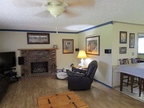 Great all brick ranch sitting on approximately 6.34 acres with beautiful views of the country side. Home features: open concept with nice size eat-in kitchen & living room with fireplace/gas logs, 3 bedrooms, 1.5 baths, enclosed garage which can be used for game room/sitting room with tile flooring, laundry room with double bowl sink, pantry in laundry off the kitchen. Home also has a newer build covered back deck being 12 X 16, and a partially fenced back yard, as well as a covered front porch. There is an invisible fence for pets designed so they do not have access to the drive way, a 10 X 16 storage building with loft, extra garden shed 6 X 8 and a concrete slab for storage or dog kennel.