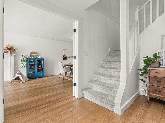An impeccable, move-in-ready 5-bed, 3-bath GEM nestled on a secluded, sun-drenched lot that is almost 8,300 sf in a quiet cul-de-sac. Open-concept layout, elegant engineered hardwood flooring throughout, tons of oversized windows with a bedroom on the main floor, close to the powder room offering flexibility & versatility for any family’s needs. The kitchen is sleek & modern with a sunny eating area that flows either way from one living area into the other. 2 gas fireplaces & 3 sliding glass doors that leads right out to your own private backyard oasis. An ideal setup for indoor-outdoor living. Sundeck, Hot Tub, mature landscaping, plenty of room to play. Upstairs is plush carpeting, the main bathroom, three bedrooms & the primary suite. Open house Sep20/21 2pm to 4pm.