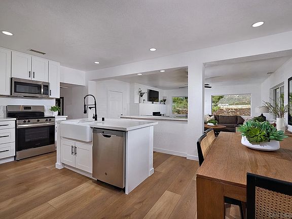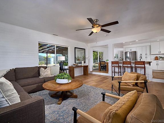 Newly renovated on nearly 1 acre flat, usable land w/ mountain views. Detached ADU, finished basement & new LVP flooring throughout. New kitchen with cabinets, quartz counters & SS appliances. Impressive exterior amenities w/ a 40’ sealed storage container, workshop, steel-covered parking/add'l workspace & plenty of parking for RVs, boats, or toys. Mature trees add privacy & shade. Well with large water tank. Pellet-burning stove. All this just minutes to I-8 & Village.