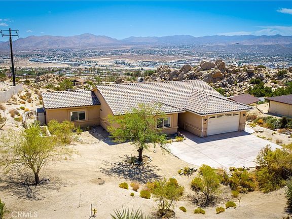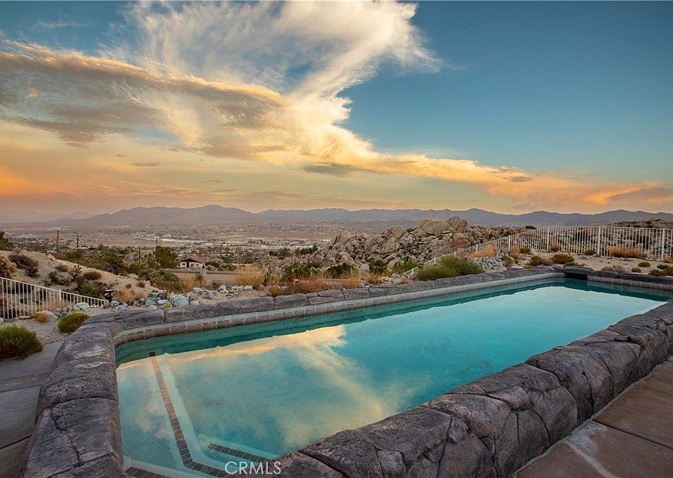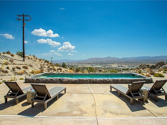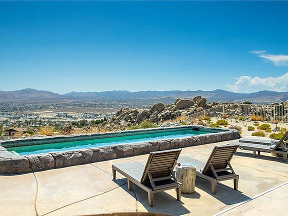 Unparalleled Luxury Awaits! Discover your dream retreat in the heart of the Hi-Desert! Presenting an Exquisite Tuscan-style Pool Home in the highly covetedWestern Hills Estates. Perched on an elevated lot, this stunning 3-bedroom, 2-bathroom masterpiece offers breathtaking panoramic views of majestic mountains,captivating boulders, and a sparkling city skyline! As you approach this enchanting property, you'll be welcomed by a picturesque drive surrounded by beautifulhomes and unique rock formations. Step inside to a spacious and modern floor plan, flooded with natural light from dual-pane windows, creating an inviting andairy atmosphere. Gorgeous tile flooring flows throughout the living spaces, complemented by high-end finishes and a cozy fireplace that adds warmth and charm.The gourmet kitchen, perfect for entertaining, boasts slab granite countertops, a convenient pot filler faucet, a pantry, and top-of-the-line stainless steelappliances! Each guest room is generously sized, while the stylish guest bath features a granite dual vanity, bathtub, and shower for ultimate comfort. Retreat tothe luxurious Primary Suite, designed to mirror the elegance of a high-end hotel. Enjoy dual walk-in closets, a lavish granite dual vanity, an indulgent walk-in tileshower, a jetted jacuzzi tub, and French doors that lead to your own breathtaking oasis! Step outside to the expansive back patio—ideal for BBQs and gatherings—where you can take a refreshing dip in the custom pool or unwind beneath a canopy of stars, soaking in the mesmerizing views of the twinkling city lights. Thisproperty is not just a home; it's a successful short-term rental generating impressive revenue, making it the perfect investment or primary residence! Additionalhighlights include a 2-car garage, full furnishings, an indoor laundry room, and so much more! Don’t miss out on this extraordinary opportunity! Schedule yourprivate tour today and make this stunning property your own!
