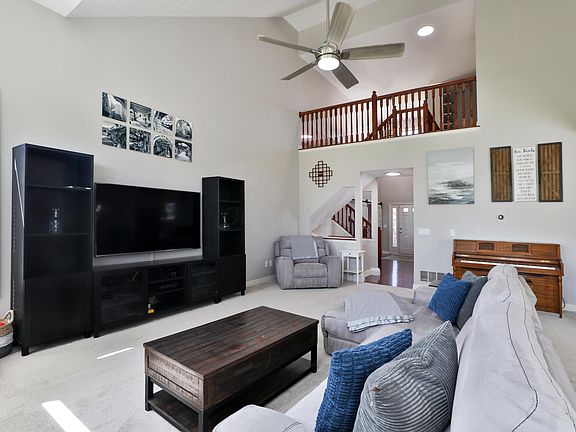 Discover an inviting and versatile open floor plan with bright, airy living spaces perfect for modern living. A two-story foyer welcomes you, leading to a private office at the front of the home. Entry from the garage includes a mud room with a bench and storage for all weather needs. The kitchen features 42' white cabinetry with under cabinet lighting, updated hardware, hdwd floors, granite counters, a versatile island/peninsula, and SS appliances, seamlessly flowing into the dining area and the impressive two-story family room with a cozy fireplace. Step outside from the dining area onto a brand-new stone patio, ideal for outdoor entertaining. Retreat to the primary suite level with soaring vaulted ceilings, a luxurious ensuite bathroom offering a double vanity, separate tub & shower, walk-in closet, and a private commode room. Enjoy additional living space in the lower-level family room with its own full bath—perfect for guests, recreation, or relaxation. The unfinished basement provides endless potential, whether for storage or a kid-friendly play area. It is also plumbed for an additional bathroom. Garage includes a custom-built tool bench with a sink, and a level 2 EV charger. The yard is dog ready with an invisible fence in both the back and front yards. This home is walking distance to the Homestead Metro Park and Heritage Trail, and less than a mile from the new Hilliard Well opening this summer. A path in the back of the neighborhood offers a safe and protected connection to the trail for all your recreational needs. This family-friendly neighborhood is close to the Hoffman Trails elementary school, and the Hilliard YMCA, both walkable, and a mile and a half via the Heritage Trail to Crooked Can Brewery, Firefly Winery, Hilliard Station splash pad, restaurants, and the Downtown Hilliard DORA. And being so close to 2 parks, the trail, YMCA, and The Well, there's an endless amount of available activities.