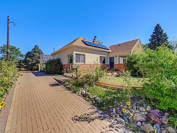 Rare opportunity to own over a half an acre in Wheat Ridge! Solar is owned and produces excellent results in energy audits. The home has charming character with two bedrooms, a dining room, kitchen and living room on the main level. The living room has corner windows filling the room with natural light and a unique brick wood burning fireplace. The home has newer vinyl double pain windows and solar panels to keep your energy bills down. Use the lower-level portion of the home for your living space or rent it out, with a one bedroom, one full bathroom, kitchen and family room with a fireplace and its own entrance. There is an absolutely beautiful brick drive-through driveway from 29th to Jay Street that offers plenty of parking. This lot has so much potential to the urban farmer with apple trees, peach trees, grape vine and native beds to the side and front of the home. There is a walk-in cellar for storing canned goods in the basement. There is also storage above the two-car detached garage and a beautiful flag stone patio between the home and the garage and a large flag stone patio at the front entrance. So much character in this 1937 home, bring your imagination and come check out this gem before it's gone!
