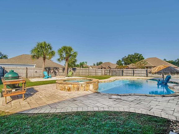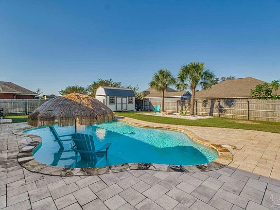 Beautiful 4-bedroom, 3-bath brick home featuring high ceilings and a spacious, open layout. The kitchen is a showstopper with gorgeous cabinets, granite countertops, a pantry, and plenty of workspace—perfect for cooking and entertaining. Enjoy meals in the formal dining room or relax in the comfortable living area. There’s also an extra room that would make a great office, playroom, or hobby space. The primary suite offers a relaxing retreat with a soaking tub, walk-in shower, and double vanities. Step outside to your own backyard paradise—a heated gunite pool and spa, a sandy fire pit area, and a nice storage shed, all within a fenced corner lot that provides space and privacy. No HOA, so you can truly enjoy your home your way!