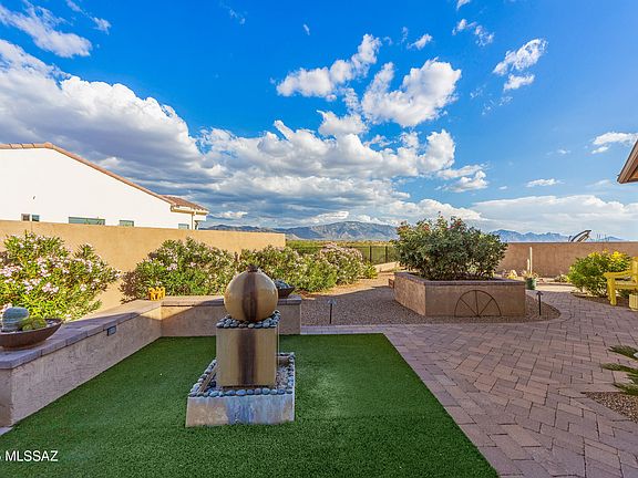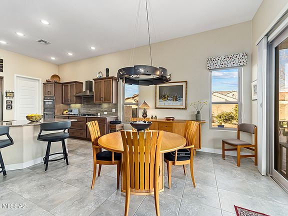 Experience resort-style living in SaddleBrooke Ranch in this expanded 2,962sf Vienta model, perfectly situated on a premium corner lot w/stunning Catalina Mountain & Mt. Lemmon views. This 3BR/3.5BA home, plus den & versatile hobby room/artist studio, is packed w/upgrades & designed for comfort & elegance. Gourmet kitchen features birch soft-close cabinetry, quartz countertops, matte gray appliances & 5-burner gas cooktop. Spacious angled island has Blanco sink & bar seating creating the perfect gathering space. Beautiful 18'' tile flooring extends throughout the home. Each bedroom offers a private en-suite bath & walk-in shower. Garage includes utility sink, water softening system, service door & epoxy flooring. Professionally landscaped fully fenced yard w/view fencing & side yard