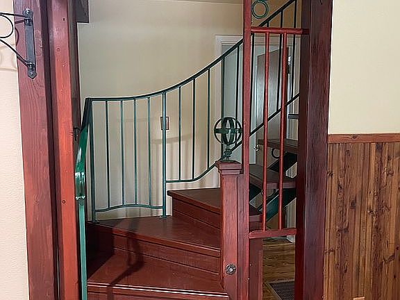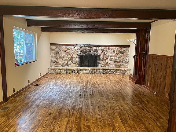 You will love the charm and uniqueness of this home. Closed in storage or shop area under the back deck and house. Large lot with driveway access to the back of the lot. Exposed beams throughout the downstairs. Stone fireplace across the wall in living room. Metal and wood staircase that curves to the upstairs.