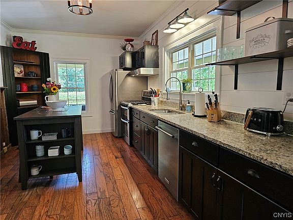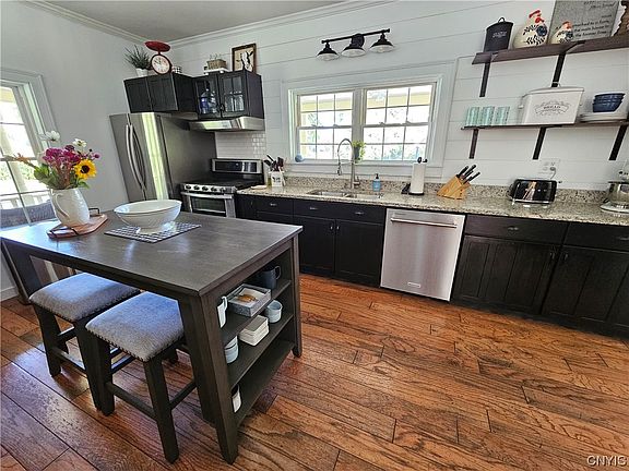 Welcome to 22 acres of country paradise! This charming 4 bedroom-1.5 bathrooms farmhouse has had extensive updates over the past 6years, and offers the perfect blend of historic charm & modern convenience. The modern kitchen offers stainless steel appliances, & granite countertops and has first floor laundry for added convenience. There’s a formal dining room and a gas fireplace in the family room for snuggling on chilly nights. With three parcels included, there are 12 arable acres ready for your agricultural dreams along with a quarter mile of Carpenters Brook flowing through the property & adding to the properties natural beauty. A spacious barn & shed offers endless possibilities, workshop, ample storage space or room for hobbies and projects. Have coffee on the wraparound porch while taking in the views of the countryside and nature. Raised garden beds are perfect for cultivating your favorite plants or garden vegetables. A new state of the art water purification system has been installed, ensuring clean & safe water for you & your family. Come see this beautiful & historic farmhouse & make it yours forever. SqFt information was obtained through Ongov.net property assessment.