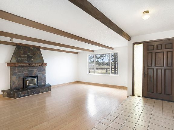 Spectacular setting and close to everything Bend has to offer. This is the one you've been waiting for. Open great room floor plan in this cute 3 bedroom, 2 bath, 1370 sqft single level ranch home situated on a 1 acre parcel with .66 acres of COI irrigation. This amazing home features a spacious great room complete with wood beam accents, wood burning fireplace insert with stone hearth and plenty of natural light. Upgraded kitchen complete with tile floors and cozy dining area. Private master suite with master bathroom and sliding glass door to the back deck. Parklike setting with mature trees, amazing greenhouse with vegetable garden, chicken coop, 1152 sqft barn, plus much more. Perfect for entertaining. Conveniently located in SE Bend and just a few minutes from town. Call your broker for a private tour today.