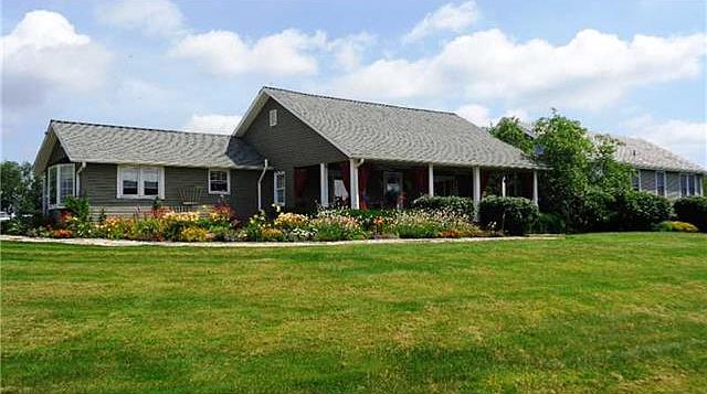 Magnificent 11 acre horse farm. As you pass thru the gated entrance and travel down the lighted drive you pass the beautiful fenced pastures and barns to the sprawling ranch that offers old world charm with upto date amenities. Updated kitchen w/ hickory cabinets and stone counter tops, open dining room and family room w/ HW floors and stunning stone FP, 2 master suites, separate in-law apartment, expansive front porch with breathtaking panoramic views, rear patio with stone wall fountain, wet bar and