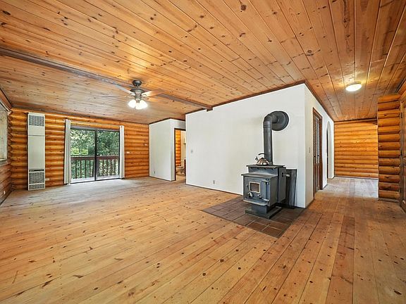 This cozy log cabin is full of character and warmth, from the inviting front porch to the charming details throughout. Inside, rich wood floors bring warmth to the main level, where an arched doorway connects the dining room to the kitchen, creating a seamless and homey flow. All bedrooms and a full bath are tucked upstairs, while a convenient half bath serves the lower level. Step out from the living room onto a sweet back deckjust the spot for quiet mornings or evening unwinding. Whether you're dreaming of a peaceful getaway or a full-time hideaway, this cabin offers the perfect blend of rustic charm and comfort.