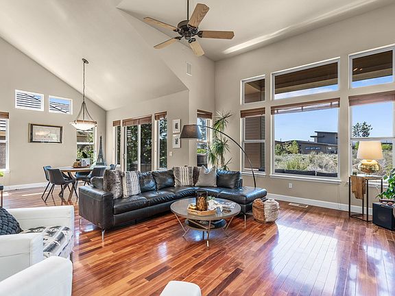 This charming Broken Top home with covered entry welcomes you into an open great room plan with soaring ceilings, hardwood flooring, gas fireplace and large windows with views towards the Cascade mountains. The kitchen offers ample cabinetry and a large eating bar and the dining area also enjoys access to covered patio, perfect for outdoor entertaining. The main level includes a large primary suite as well as a private office off the entry. Upstairs you'll find a comfortable bonus room, an en-suite Guest room and a third guest room with access to the third full bath. Located in Fall Creek at Broken Top, this property benefits from front yard landscape maintenance. One of Bend's most sought after Westside communities, Broken Top offers gorgeous golf course views, paved community walking paths throughout and excellent dining at the Broken Top Restaurant. Optional Club Memberships include golf and tennis, pickleball fitness center and seasonal pool.