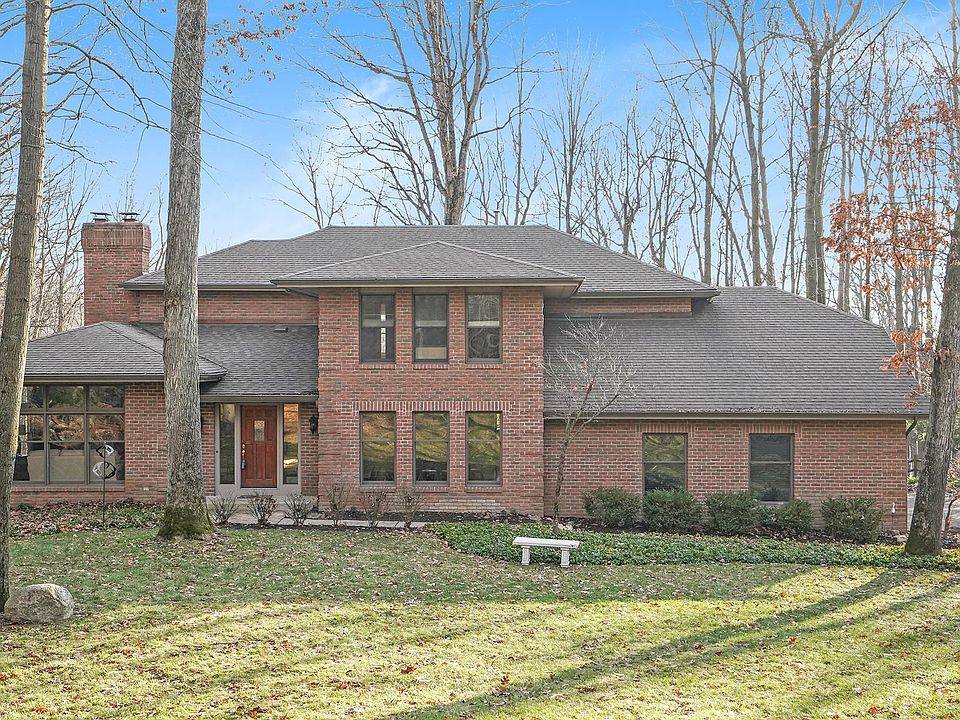 Custom Built, executive home nestled at the end of a quiet cul-de-sac in Hunters Run. Large Living room with high ceilings & 2 sided fireplace to the Family room. Formal Dining room. Large Kitchen with dinette, desk area, granite island with upgraded appliances, and expansive windows overlooking the deck and enlarged backyard. Back entrance with Main Floor Laundry. Upper level features 4 bedrooms with a large private Master Suite & Walk In Closet. Lower level walk out includes family room with fireplace, bedroom, full bath, dark room (which could also be used for a wine cellar), and storage. Great location close to Forest Hills Eastern High. Located off a natural beauty road. Close to downtown Ada.