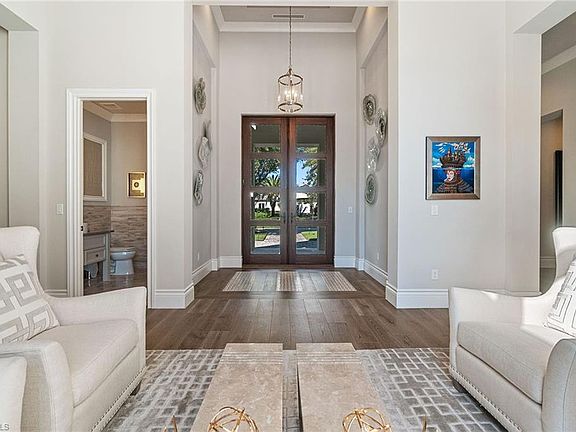 Located in the highly sought-after community Quail West in Naples, Florida, this stunning property offers a blend of elegance, comfort and convenience. Nestled in a tranquil and upscale neighborhood, it provides easy access to the best that Naples has to offer, including world-class beaches, shopping, dining and golf courses. This exquisite turnkey home features two owner’s suites, two guest suites, plus den, five baths and 5,938 square feet of living space, designed with an open-concept layout to maximize both privacy and entertaining. The wine room is conveniently located in the dining room. The gourmet kitchen is equipped with top-of-the-line appliances, sleek countertops, double islands and custom cabinetry, perfect for culinary enthusiasts. A spacious living area boasts expansive windows that flood the space with natural light and provide picturesque views of the surrounding lush landscape. The primary suite is a serene retreat, featuring a magnificent closet with custom built-ins, Druzy Quartz stone, a built-in desk and dressing area. This space can be more than a closet and can serve as multifunctional for multiple uses. A spa-like bath with a soaking tub, walk-in shower and dual vanities. The home’s other bedrooms are generously sized and offer ample closet space. Outside, the backyard oasis invites you to relax and enjoy the year-round Florida sunshine. Whether you’re lounging by the heated pool, dining alfresco in the screened-in lanai, sitting by the fireplace or enjoying the beautifully landscaped grounds, this home offers the ultimate in outdoor living. Additional features include a four-car garage, a large laundry room, high ceilings, custom built-ins throughout with designer finishes. This former model by Stock Custom Homes was built as a 4,427-square-foot then in 2024 an additional 1,638 square feet was added, making this home 6,000 + square feet. The Cristale is move-in ready and includes a whole-house generator, impact glass throughout, electric retractable lanai screens, electric metal hurricane shutters, Control4 for lighting, security and music throughout the home, all new gutters and roof tiles to the original home in 2024. With its prime location, on a quiet street and exceptional design, this property is the perfect place to call home in Naples. This is a rare opportunity to own a piece of paradise in one of Southwest Florida's most desirable areas. Quail West offers Two Championship Golf Courses, Racquet Sports, 12,000 Sq Ft Fitness Center, multiple indoor and outdoor dining facilities. Don't miss out on this exceptional home! IMMEDIATE GOLF AVAILABLE!