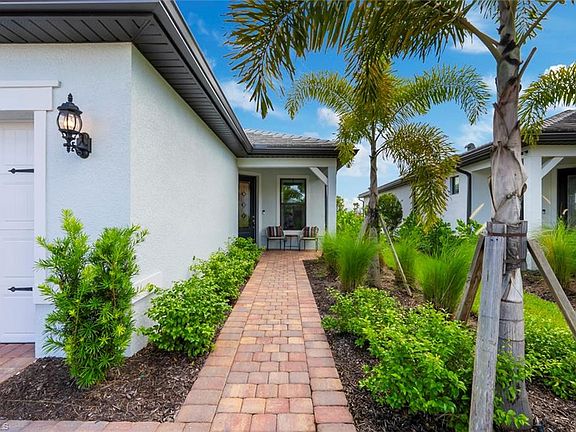 BETTER THAN NEW • WATER VIEW • MOVE- IN READY Discover this single-family home in the 55+ Del Webb Naples community, featuring the CONTOUR floor plan with 2 bedrooms, 2 full baths, and a versatile den. Built just over a year ago, this home FEELS BRAND NEW - yet it’s been thoughtfully upgraded and meticulously maintained. Wake up to peaceful WATER AND SUNRISE VIEWS from your ENCLOSED LANAI, the perfect spot for morning coffee or quiet evenings. Inside, you’ll find TILE FLOORING throughout, IMPACT RESISTANT WINDOWS & DOORS, a decorative glass entry door enhances the home’s curb appeal. CUSTOM WINDOW TREATMENTS adorn every window, while FRESH INTERIOR PAINT adds a modern, designer touch. The PRIMARY SUITE is designed as a private retreat, complete with dual sinks, a walk-in shower, and a CUSTOM-DESIGNED CLOSET. The KITCHEN is a true highlight, featuring SOFT-CLOSE cabinetry, PULL-OUT DRAWERS, under cabinet lighting and a CUSTOM BACKSPLASH that ties the space together beautifully. The GARAGE offers even more convenience with an EPOXY COATED FLOOR and a 4-FOOT EXTENSION for additional storage or workspace. The BRAND NEW FURNISHINGS are NEGOTIABLE, making this home move-in ready. This home comes with the SOCIAL MEMBERSHIP, but take note GOLF LOVERS, Panther Run Golf Club offers optional MEMBERSHIPS with premium golf experiences just steps from your backyard. In Del Webb Naples, you’ll enjoy WORLD-CLASS AMENITIES that rival luxury resorts: dine at the Rusty Putter Restaurant, soak in the RESORT-STYLE or LAP POOLS, break a sweat in the state-of-the-art FITNESS CENTER, and play your way through PICKLEBALL, TENNIS, bocce, billiards - even a top-tier GOLF SIMULATOR! Need groceries, church, or a bite to eat? Just hop in your golf cart and cruise into town - Publix and the heart of Ave Maria are just minutes away. This isn’t just a home - it’s a LIFESTYLE UPGRADE in one of Southwest Florida’s most vibrant 55+ communities. Don’t miss your chance to live where fun, fitness, and friendships flourish year-round!