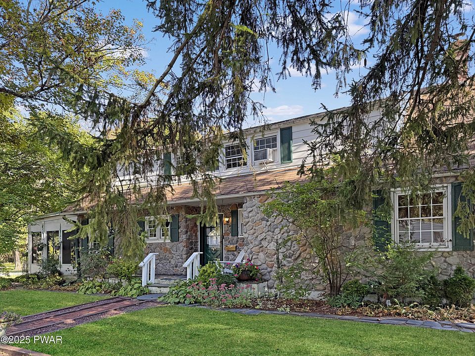 Two family craftsman style stone facade home on corner lot in quaint Victorian Village of Milford, Pa. Main level features 3 bedrooms , two baths, sunken living room and light and airy enclosed sun porch. Hardwood and softwood floors. Beamed ceiling. Gas fireplace. Basement and one car detached garage. Upstairs rental apartment has two bedrooms, one bathroom and an open bright floor plan. There are beautiful gardens and patio sitting areas surrounding the home. This is the former home of famous jazz singer Ronald Whyte. Easy to show. The roof is in need of repair and there is a $12,000 credit for repairs.