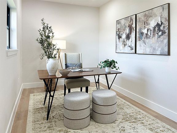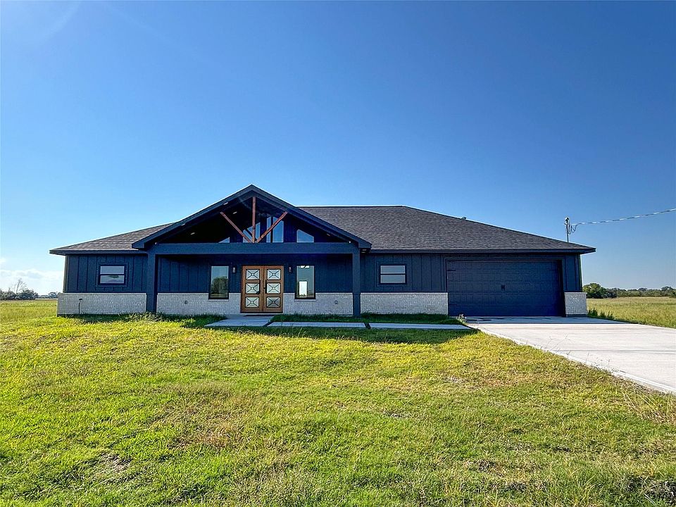 This stunning 3-bedroom, 2.5-bath home with a 2-car garage is the perfect blend of modern style and functionality all on just under an acre. The open floor plan features soaring high ceilings, creating an airy, expansive feel throughout. A sleek, contemporary fireplace adds a touch of elegance to the living area, which is bathed in gorgeous natural light pouring through large windows. The chef-inspired kitchen boasts beautiful quartz countertops, a spacious island with a breakfast bar, a wine rack, and a beverage fridge, all seamlessly flowing into the living area for easy entertaining. The primary bedroom is a true retreat, offering ample space, a large closet, and a luxurious en suite bath complete with an LED light mirror, soaking tub, and exquisite finishes. Two additional well-appointed bedrooms provide plenty of space. With its chic, modern design and thoughtful layout, this home truly offers the best of both comfort and style.