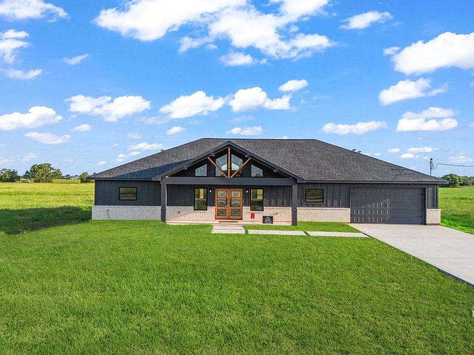 Step into this stunning custom modern farmhouse, situated on an acre in peaceful Angleton, Texas. Enjoy Country living not too far from the city. The home features exterior lighting, soaring 22-foot ceilings, an open-concept layout, and a flow that’s perfect for both entertaining and everyday living. Enjoy 3 spacious bedrooms, a live-in office, and spa-inspired bathrooms with floating vanities, quartz countertops, LED mirrors, and a stunning primary suite with a luxe wet room and freestanding tub. The kitchen is a chef's kiss—fully equipped with quartz surfaces, a nearly 9-foot island, soft-close custom cabinetry, wine rack, under-bench beverage fridge, and a gas cooktop ready for your next family dinner. From the sleek electric fireplace to the black-framed windows, premium LVP flooring, and energy-efficient spray foam insulation—every inch is upgraded. All appliances are included.Come experience modern farmhouse living in the popular Bar X neighborhood.